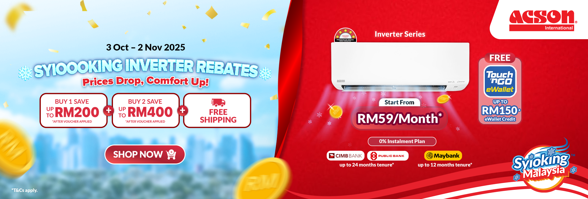 Desktop Air PurifierRM259.00 Original price was: RM259.00.RM199.00Current price is: RM199.00.Portable DehumidifierRM229.00 Original price was: RM229.00.RM219.00Current price is: RM219.00.Foldable Floor FanRM339.00 Original price was: RM339.00.RM279.00Current price is: RM279.00.Mini USB Table Fan (Pastel Green)RM89.00 Original price was: RM89.00.RM77.00Current price is: RM77.00.REINO Inverter (1.0HP) Air Conditioner R32 WiFiRM1,700.00 Original price was: RM1,700.00.RM1,540.00Current price is: RM1,540.00.REINO+ Inverter (1.0HP) Air Conditioner R32 WiFiRM1,920.00 Original price was: RM1,920.00.RM1,760.00Current price is: RM1,760.00.REINO+ Inverter (1.5HP) Air Conditioner R32 WiFiRM2,120.00 Original price was: RM2,120.00.RM1,960.00Current price is: RM1,960.00.DehumidifierRM349.00 Original price was: RM349.00.RM325.00Current price is: RM325.00.AVO Non-Inverter (1.0HP) Air Conditioner R32RM1,390.00 Original price was: RM1,390.00.RM1,290.00Current price is: RM1,290.00.REINO Inverter (1.5HP) Air Conditioner R32 WiFiRM2,000.00 Original price was: RM2,000.00.RM1,840.00Current price is: RM1,840.00.
