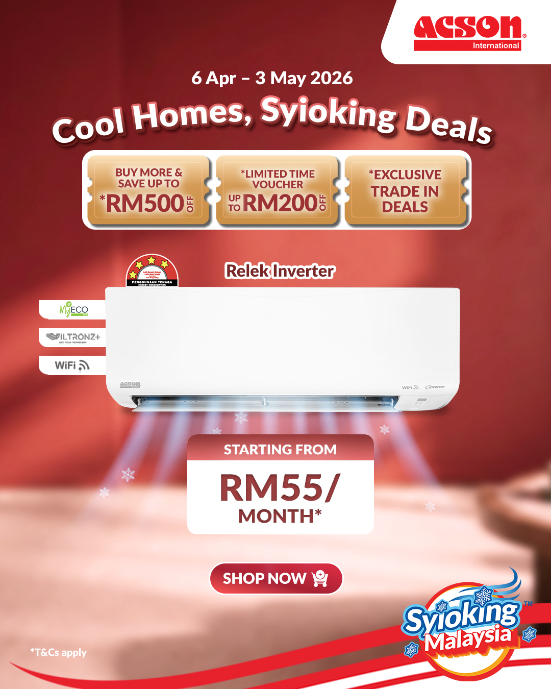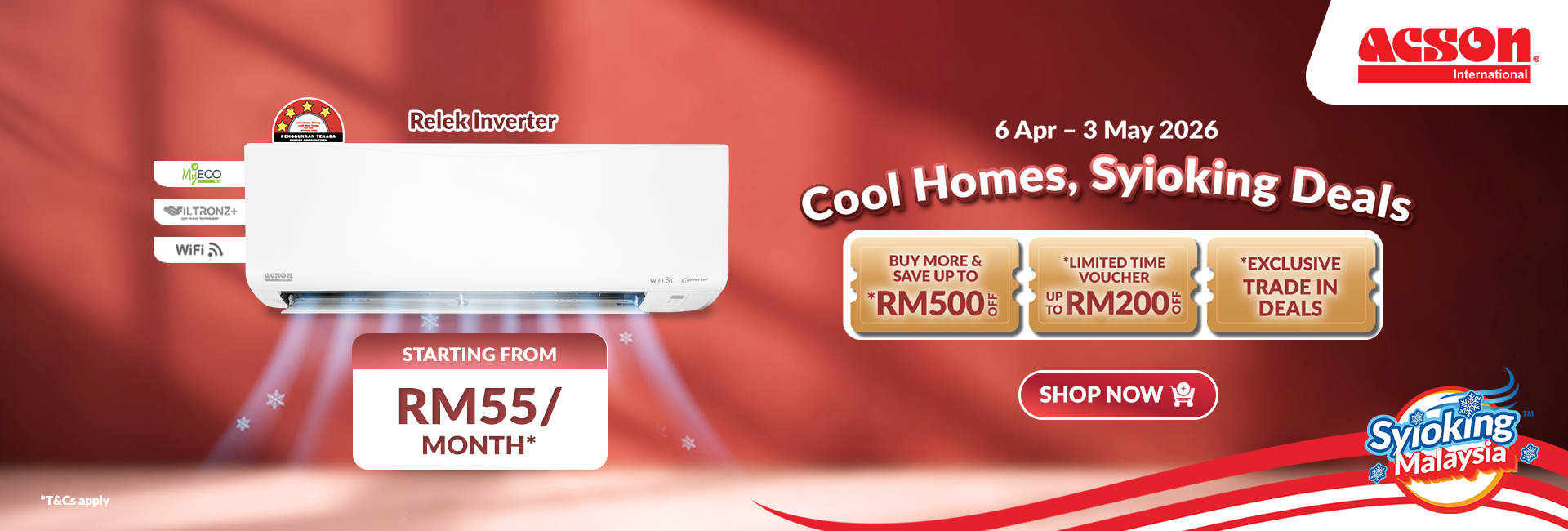 Handheld FanWM PromoRelekService PromoAPD PromoAHG Promo0% Instalment PlanBNPLTrade-InExtended Warranty Desktop Air PurifierRM259.00 Original price was: RM259.00.RM219.00Current price is: RM219.00.Portable DehumidifierRM259.00 Original price was: RM259.00.RM219.00Current price is: RM219.00.Foldable Floor FanRM359.00 Original price was: RM359.00.RM299.00Current price is: RM299.00.DehumidifierRM379.00 Original price was: RM379.00.RM339.00Current price is: RM339.00.Mini USB Table Fan (Pastel Green)RM109.00 Original price was: RM109.00.RM85.00Current price is: RM85.00.REINO Inverter (1.0HP) Air Conditioner R32 WiFiRM1,700.00 Original price was: RM1,700.00.RM1,660.00Current price is: RM1,660.00.REINO+ Inverter (1.0HP) Air Conditioner R32 WiFiRM1,920.00 Original price was: RM1,920.00.RM1,780.00Current price is: RM1,780.00.REINO+ Inverter (1.5HP) Air Conditioner R32 WiFiRM2,120.00 Original price was: RM2,120.00.RM1,980.00Current price is: RM1,980.00.AVO Non-Inverter (1.0HP) Air Conditioner R32RM1,390.00 Original price was: RM1,390.00.RM1,320.00Current price is: RM1,320.00.Out of stockREINO Inverter (1.5HP) Air Conditioner R32 WiFiRM2,000.00 Original price was: RM2,000.00.RM1,960.00Current price is: RM1,960.00.