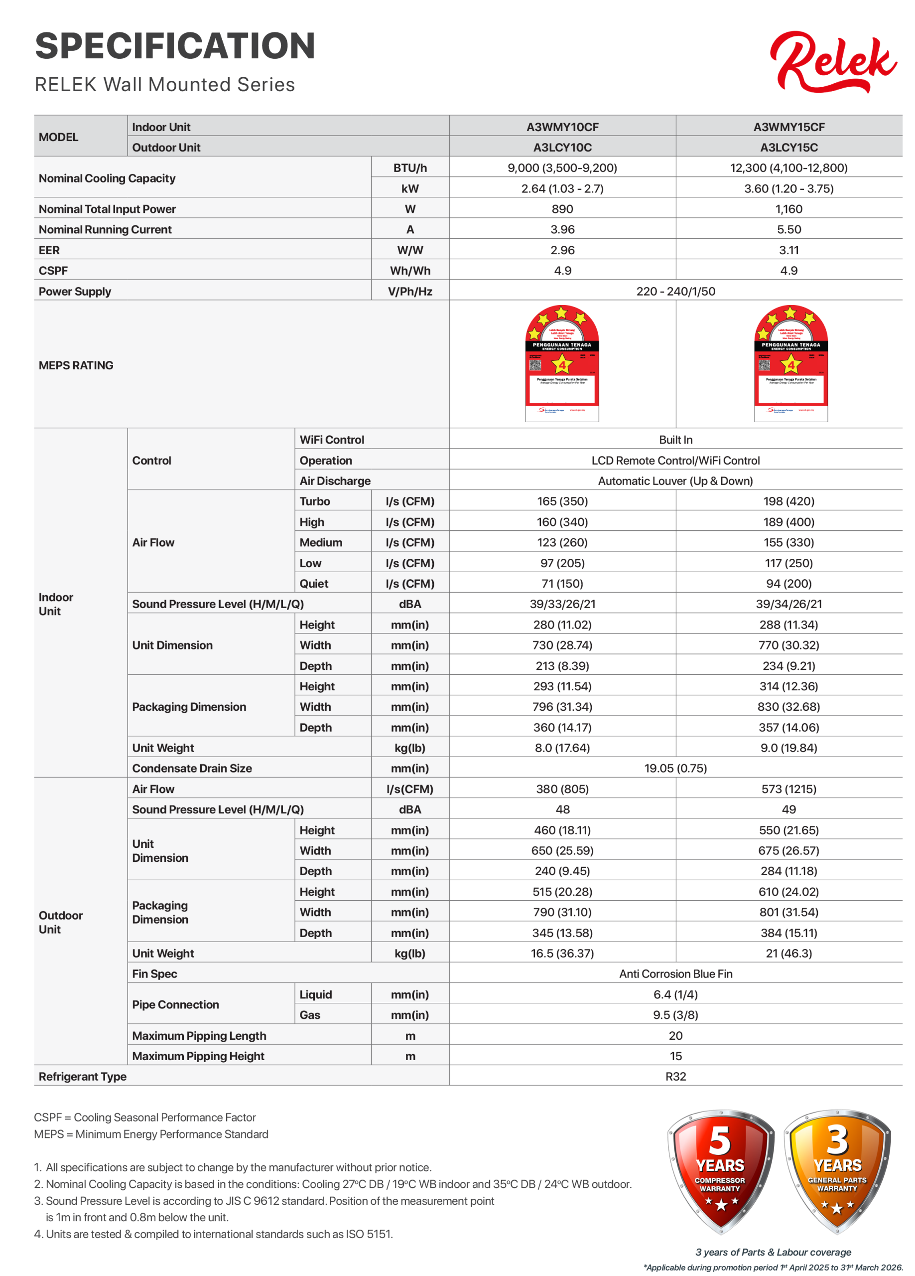 Relek Inverter (1.5HP) Air Conditioner R32 WiFi